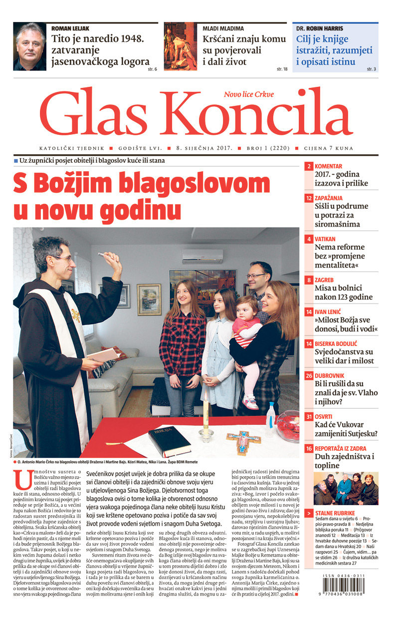 Utemeljenim optimizmom današnjih Kristovih učenika sadržanim u naslovu: »S Božjim blagoslovom u novu godinu« i slikom župničkog posjeta hrvatskoj obitelji te blagoslovom kuće ili stana na prvoj stranici, predstavlja se čitateljima novi broj Glasa Koncila u novoj 2017. godini s nadnevkom od 8. siječnja.