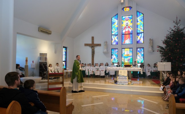 Također, na središnjoj misi djeca su svečano obilježila Nedjelju Božje riječi. Vlč. Bojanić u svojoj propovijedi je u dijalogu s djecom objasnio prvo čitanje u kojem prorok Jona posluša glas Božji i poziva Ninivljane na obraćenje Bogu. "Tako i mi moramo biti poput Jone i osluškivati što Bog od nas traži, a to možemo samo ako otvorimo srce čitajući i slušajući Božju riječ. Apostoli su bili revni, poslušni i strpljivi u ribolovu pa tako moramo i mi biti s ostalim ljudima koje nam Bog stavlja na put kako bi ih doveli k Isusu", rekao je vlč. Bojanić. Na kraju misnog slavlja djeca su okupljenima citatima iz Biblije slikovito prikazali što bi za svakoga trebala značiti Božja poruka u vlastitim životima. Na kraju mise svako dijete moglo je uzeti Bibliju svojoj kući kako bi još revnije čitalo Božju riječ.