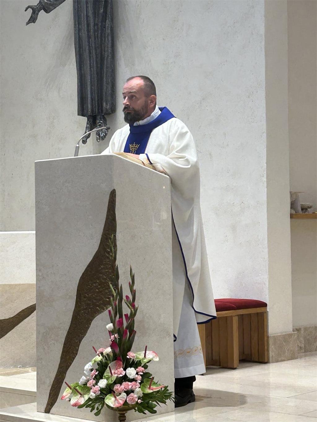 Na početku mise, župnik vlč. Ocvirk pozdravio je mladomisnika i poželio mu dobrodošlicu, kao i hodočasnicima iz Zaprešića članovima Udruge Stepinčeva oaza mira predvođenima svojim predsjednikom đakonom Ilijom Nikolićem koji je na misnom slavlju vršio đakonsku službu. Vlč. Ocvirk istaknuo je da je sretan i zahvalan Bogu što na spomendan bl. Marije Petković u zadnjih nekoliko godina mladomisnici predvode euharistijska slavlja.