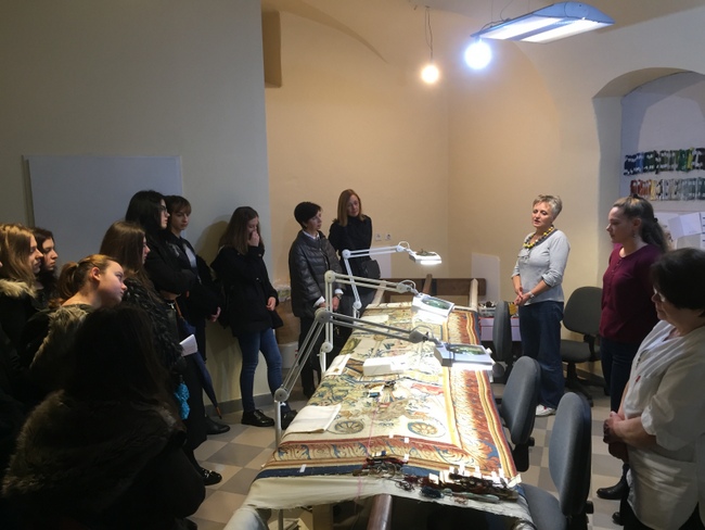 Skupina učenica 4. razreda Odjela za oblikovanje tekstila Škole primijenjene umjetnosti i dizajna, predvođene svojim profesoricama Ljiljanom Hajdarović i Ines Fey Gjurin, posjetile su u petak 21. listopada Nadbiskupski duhovni stol gdje se od prošle godine izvode konzervatorsko-restauratorski radovi na tapiseriji „Srpanj-kolovoz“ ciklusa tapiserija „Mjeseci u godini“ iz Riznice zagrebačke katedrale. Nakon pozdrava direktora Riznice zagrebačke katedrale mons. Nedjeljka Pintarića, o povijesti nastanka ciklusa tapiserija te o poduzetim radovima Hrvatskog restauratorskog zavoda od 2015. godine, kao i tehnikama restauracije na konkretnom primjeru, govorila im je voditeljica radova na tapiseriji Branka Regović, konzervator-restaurator.