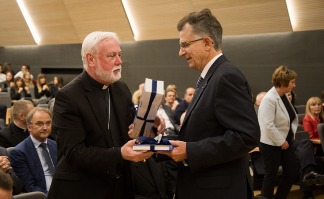 U srijedu 10. listopada 2018. godine u Velikoj dvorani Hrvatskog katoličkog sveučilišta, tajnik Svete Stolice za odnose s državama nadbiskup Paul Richard Gallagher održao je predavanje pod nazivom „Dvadeset godina od ratifikacije Ugovora između Svete Stolice i Republike Hrvatske o gospodarskim pitanjima“.