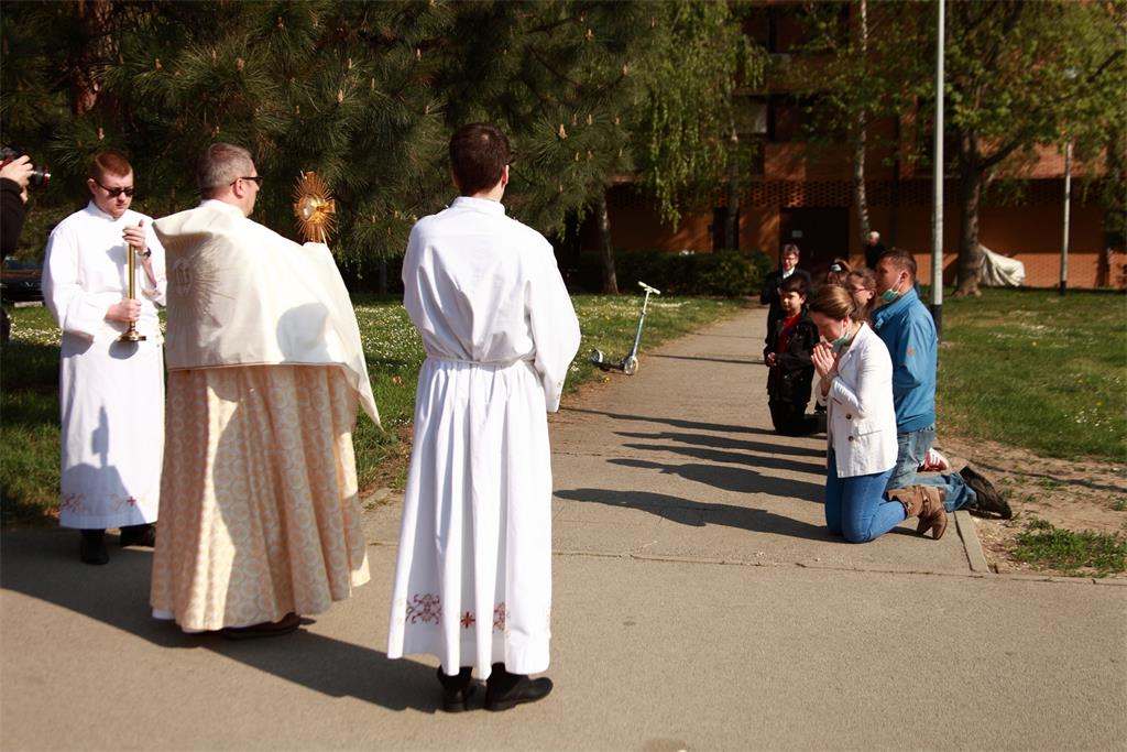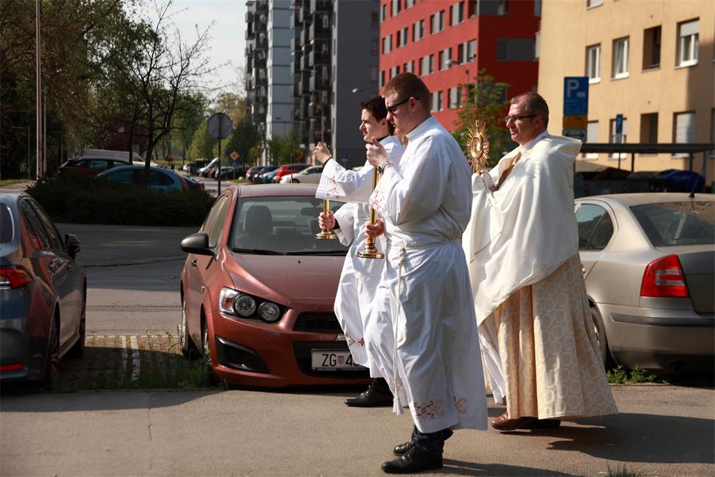 Uz to župnik je na Uskrs prije podne u pratnji ministranata i nekoliko mlađih župljana pronio Presveto onim ulicama Savice koje na Cvjetnicu i na Veliki petak nisu bile posjećene. Tako su i župljani tih ulica mogli radosno pozdraviti Gospodina, ako ne u crkvi na svetoj misi, onda sa svojih balkona i prozora ili na ulici.