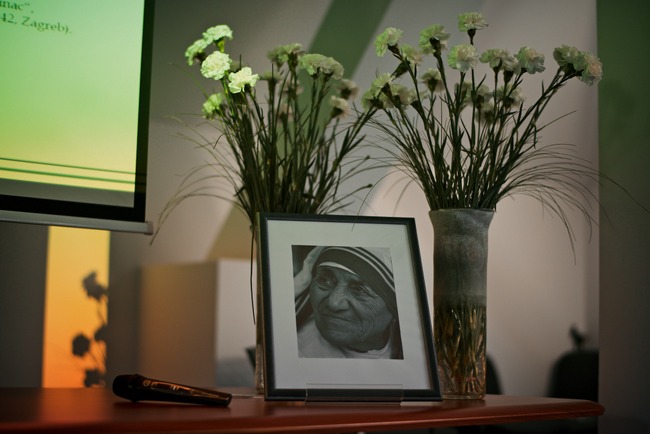 Prvo predavanje održala je sestra Ivana Karavanić iz reda Družbe sestara Misionarki ljubavi, govoreći o životnom pozivu svete Majke Terezije, nastanku reda, odlasku u Indiju i njezinoj povezanosti s Hrvatskom.
