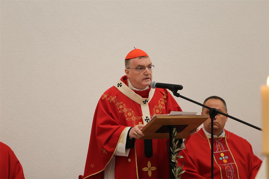 Ovdje smo danas i u posebnome zajedništvu s cijelom Crkvom zagrebačkom, sa svim vjernicima naše nadbiskupije jer, u nemogućnosti zajedničkoga slavlja u našoj katedrali, ovo sveto mjesto i ovo slavlje postaju znak naše povezanosti, znak naše pripadnosti istoj zajednici Kristove Crkve, znak sjedinjenosti u nakanama i molitvama za naš narod, za našu nadbiskupiju, za naše obitelji, za sve koji trpe, osobito za one koji prolaze kroz bolno iskustvo rata i progonstva.