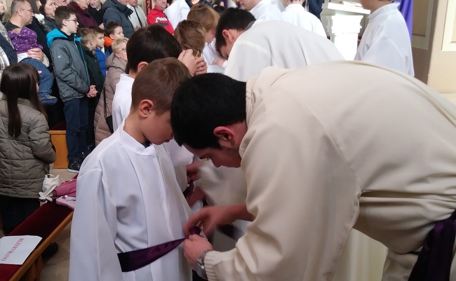 Vjerovanja, novi ministrantski kandidati, na župnikov upit jednoglasno su obećali da će svojim ponašanjem, pobožnošću i revnim služenjem biti primjer i poticaj drugima te služiti oltaru Gospodnjem na čast i ponos svoje župne zajednice. Župnik je blagoslovio njihove ministrantske haljine nakon čega su ih odjenuli i pridružili se starijim ministrantima u službi oko oltara.