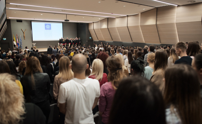 Rektor Hrvatskog katoličkog sveučilišta prof. dr. sc. Željko Tanjić zaželio je svima dobrodošlicu i puno uspjeha u osmoj akademskoj godini, istaknuvši važnost Zagrebačke nadbiskupije za rad i rast Hrvatskog katoličkog sveučilišta te objasnivši modele financiranja studija i otvorenost HKS-a prema novim izazovima u akademskoj godini.