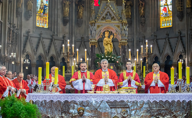 Na početku homilije biskup Košić je istaknuo kako slaveći ovu svetu misu na grobu blaženog Alojzija Stepinca, biskupa i mučenika, u zagrebačkoj katedrali, želimo iskazati poštovanje tom velikanu hrvatske katoličke vjere. „Želimo mu preporučiti našu djecu, mlade, naše obitelji, naše muževe i žene, starce i starice, naše bolesnike i nemoćne, naše umiruće, naše drage poginule i preminule. Utječući se njemu molimo za sve naše drage kako u prošlosti i sadašnjosti, ali moleći i za nadu budućnosti i vječnosti“.
