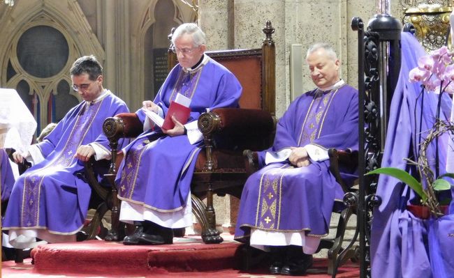 Pozdravljajući prisutne vjernike, mons. Kuhtić je naglasio kako smo danas u zagrebačkoj katedrali da bismo molili jedni za druge učeći od blaženog Alojzija Stepinca kako biti poslušan Bogu i uz pomoć Duha Svetoga radosno svjedočiti svoju vjeru u svakodnevnom životu. U propovijedi je istaknuo kako su u evanđelju zapisane dvije slike kralja koje imaju odlučujuću važnost. U prvoj Pilat pere ruke i drugima predaje Isusa da ga ubiju, u drugoj Isus pere noge apostolima dajući svoj život da bismo mi svi živjeli. Blaženi Alojzije Stepinac bio je uronjen u dramu čovjeka. Donosio je slobodu dobra koje je željelo prekid laži.