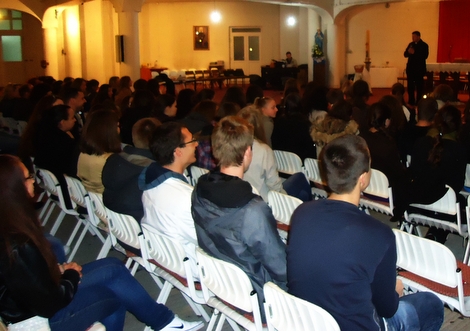 Okupljnim mladima vlč. Domagoj pročitao je ulomak iz Evanđelja po Luki- Ukazanje učenicima na putu u Emaus. Isus dolazi tužnim i razočaranim učenicima koji ne vjeruju u njegovo uskrsnuće, koji ga ne prepoznaju i hoda s njima. Evanđelje je prenio u situacije s kojima se mladi svakodnevno suočavaju pitajući ih kako oni postupaju kada se susreću s osobama koje nisu vjernici. Kroz to pitanje naglasio je i ulogu Crkve: „Naša dužnost je svjedočiti za Isusa Krista, ali prije svega moramo ljubiti čovjeka.“
