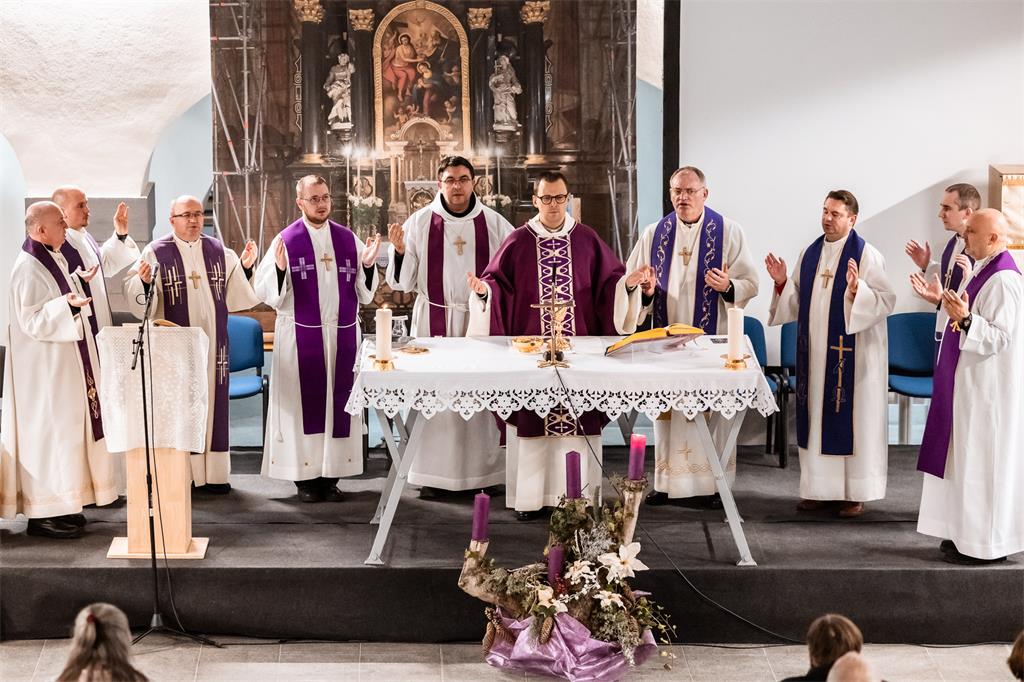 Misno slavlje četvrtog dana Pučkih misija Karlovačkog dekanata 4. prosinca u atriju Veleučilišta u Karlovcu predvodio je povjerenik za pastoral duhovnih zvanja i docent na Katoličkom bogoslovnom fakultetu u Zagrebu vlč. dr. sc. Jakov Rađa. Koncelebrirali su svećenici Karlovačkog dekanata predvođeni dekanom mons. Antunom Senteom.