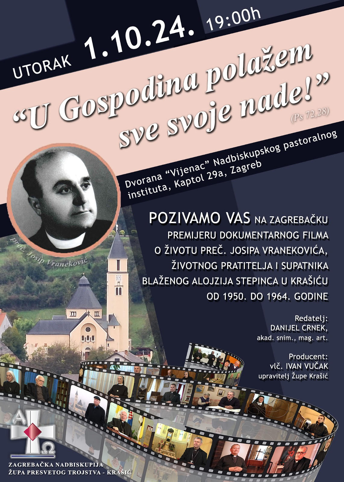 U povodu obilježavanja 60. obljetnice smrti preč. Josipa Vranekovića (1921. - 1964.), Župa Krašić napravila je dokumentarni film „U Gospodina polažem sve svoje nade!“ redatelja Danijela Crneka koji u 53 minute prikazuje život, lik i djelo preč. Vranekovića od 1950. do 1964. godine. Ovaj dokumentarni film „dar je voljenom krašićkom župniku“ Vranekoviću.