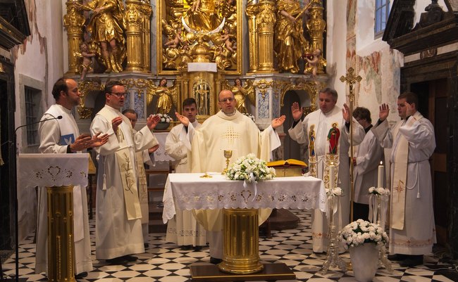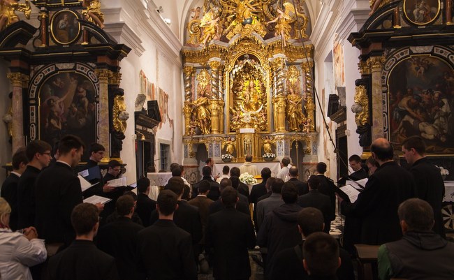 Misno slavlje je predslavio rektor Kokotec, pjevanje su predvodili ljubljanski bogoslovi, a s nekoliko pjesama i zagrebački. Jedni i drugi, nakon misnoga slavlja i Večernjice, otpjevali su nekoliko pjesma. Bilo nam je drago čuti da se toga dana Crkva Božja u Sloveniji spominje godišnjice rođenja ljubljanskog biskupa Antona Vovka, za kojega se vodi postupak za proglašenje blaženim, koji je hrabro i postojan u vjeri, nakon Drugoga svjetskoga rata vodio ljubljansku biskupiju.