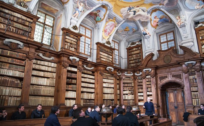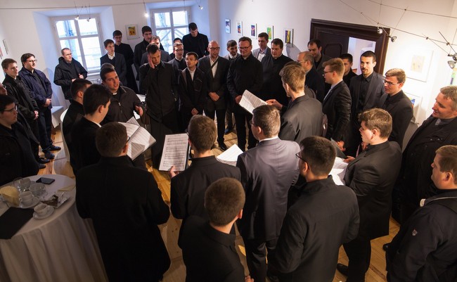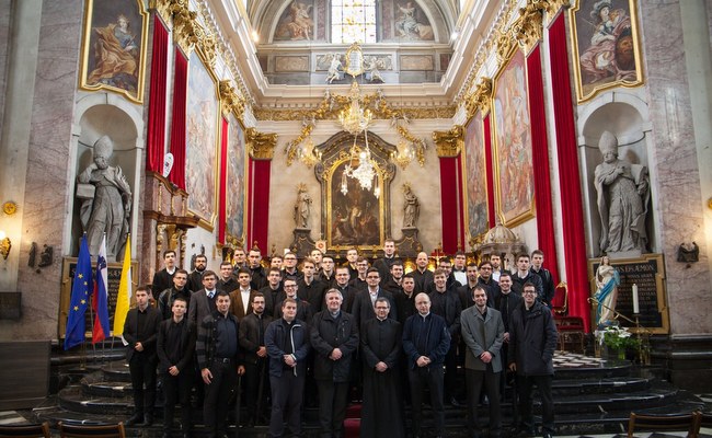 Nakon molitve i pjesme za duhovna zvanja, rektor nam je otkrivao značenja pojedinih umjetničkih djela kapele – oltarnoga poliptiha, vitraja i križnoga puta koji su djela slovenskoga umjetnika i svećenika Stanka Kregara, a također je svima uputio riječ poticaja na putu bogoslovske formacije. Drugo nezaobilazno mjesto u ljubljanskoj Bogoslovije je prekrasna Knjižnica koja je u svim svojim segmentima (knjige, katalog, police, oslik…) – umjetničko i knjižničarsko remek-djelo iz prve polovice 18. stoljeća.