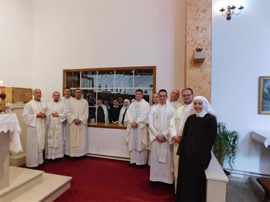 Druženje se nastavilo u sestarskoj govornici gdje su se sestre izbliza upoznale s mladomisnicima i njihovim dosadašnjim iskustvom na Božjem putu i obećale im daljnju molitvenu podršku i pratnju.