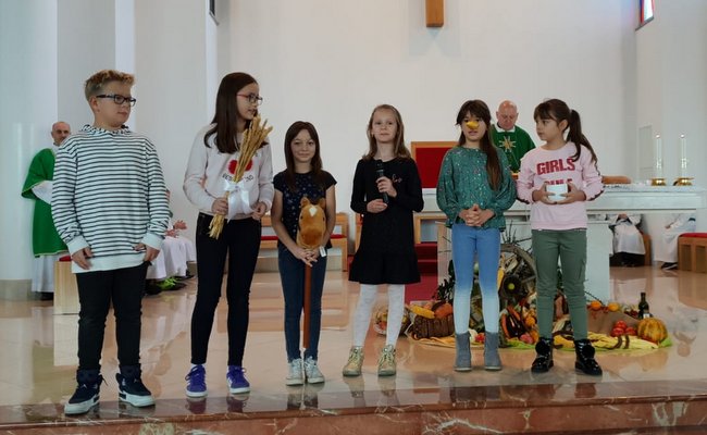 Na kraju euharistijskog slavlja djeca su izvela nekoliko prigodnih recitacija i igrokaz „Dani kruha i zahvalnosti.“