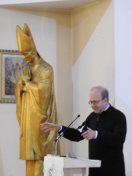 Nakon predavanja uslijedila je sveta misa koju je predvodio msgr. Ramos, a u propovijedi je nastavio svoje razmišljanje govoreći kako Gospodin sve čini novo. "Molimo danas za tu novost, molimo da ozbiljno prihvatimo poruku evanđelja. Moramo se obnoviti. Vidim da ovdje u Crkvi ima onih za koje mi u Portugalu kažemo da su novi, naime na portugalskom se za mlade kaže novus, novo itd. Obratiti se, obnoviti se znači postati ponovno mlad. I mi se trebamo obratiti, obnoviti, Isus je došao obnoviti svijet, obnoviti nas, obnoviti naše duše. Što je učinio Gospodin u Knjizi proroka Izaije, učinio je da u pustinji proteče voda, rijeka u stepi. Na početku Novoga zavjeta stoji osoba Ivana Krstitelja i njegov poziv: "Pripravite put Gospodinu!" To je ono što Gospodin želi danas učiniti i nama, želi pustinju naše duše pretvoriti u plodonosan vrt prepun stabala, prepun plodova, u mjesto gdje Bog može prebivati, gdje se može šetati kao na početku stvorenja. Bi li vi htjeli da vaša duša bude ugodan park za Boga, da u njoj Bog rado prebiva, da se u našoj duši dobro osjeća. Volite li vi ići u parkove? Ja volim! Lijepo je kada je park uređen, a to isto Gospodin želi za našu dušu da bude uredna, da bude nova. Zbog toga danas s psalmistom kličemo: "Velika nam djela učini Gospodin, opet smo radosni."
