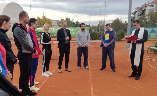 Okupljene tenisače su pozdravili vlč. Norbert Koprivec i povjerenik za pastoral sportaša Zagrebačke nadbiskupije, trajni đakon Marijan Spehnjak. Uz prigodnu riječ ohrabrenja i poticaja te molitvu, vlč. Koprivec je blagoslovio natjecatelje i teniske terene. (M.S.)