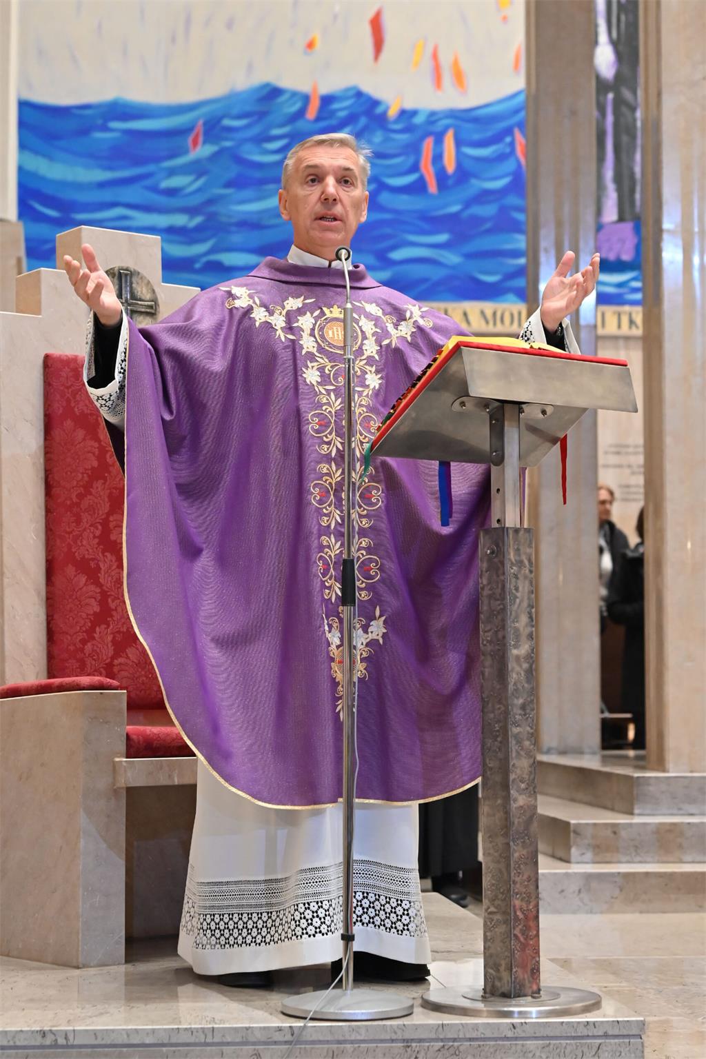 Nadalje je govorio o trećoj poruci evanđelja, u susretu Isusa s bolesnikom koji je bolovao trideset osam godina, istaknuvši kako i mi često zamišljamo način na koji bi nam Gospodin trebao pomoći, a nismo spremni prihvatiti njegov način, koji nam se ponekad čini nemogućim. "Povjerovati Gospodinu u svakoj situaciji, pa i onda kada se čini da su sve lađe potonule - to je poziv koji nam upućuje: ‘Ustani i hodi.’ Na nama je povjerovati. Zato se nemojmo zatvarati u vlastite logike, nego budimo otvoreni Duhu Svetomu, i onda kada nam nije posve jasno što Bog želi činiti u nama i po nama. Važno je slušati i poslušati Isusovu riječ te je ostvarivati u konkretnom životu. Bog uvijek želi našu suradnju", naglasio je.
