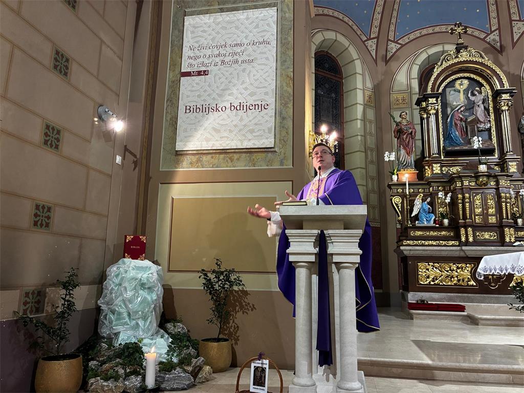 U homiliji vlč. Vuković poručio je: "Lako se, slušajući evanđelja koja imaju za temu grijeh, fokusirati na sebe i razmišljati: 'I ja sam grešan, i meni bi Bog oprostio'. Tada počinjemo moralizirati i pitamo se: 'Je li pravedno da je Bog ženi oprostio?' Važnije od takvih promišljanja je ono što osjetimo u sebi dok slušamo ovu Božju riječ, a osjećamo da nas Bog liječi, smanjuje našu ljutnju, razotkriva nam stvari koje smo već znali sami o sebi."