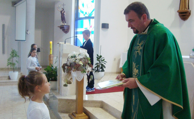 Djeca i učenici osnovne škole zamolili su Duha Svetoga da na njih izlije obilje milosti u novoj školskoj i vjeronaučnoj godini, te su prinijeli na oltar prigodne darove.