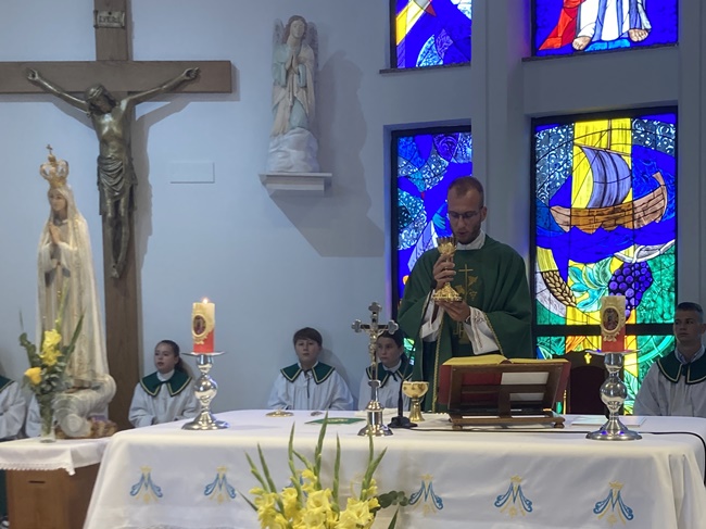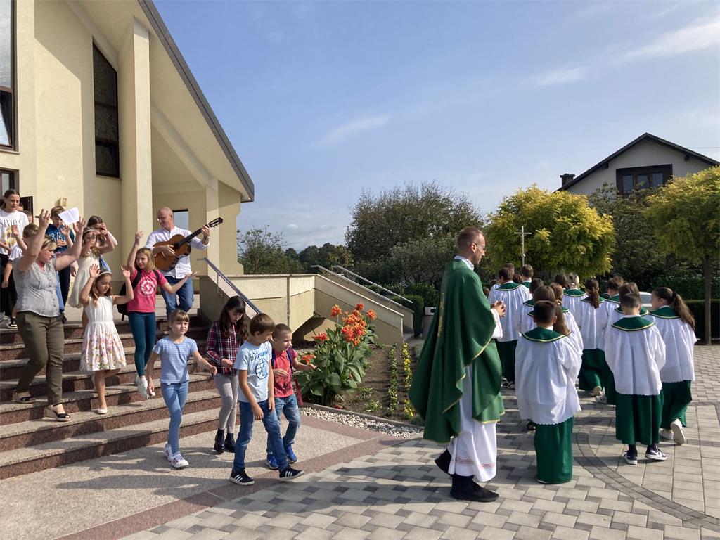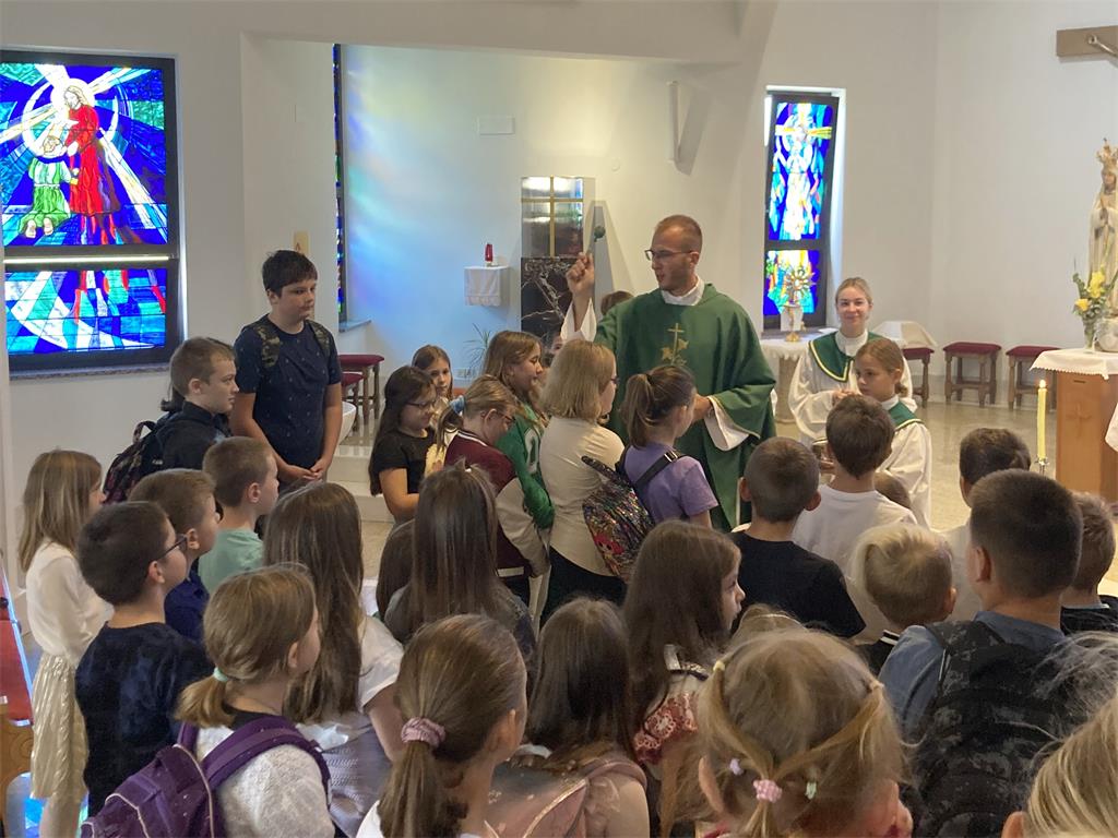 Na prijepodnevoj svetoj misi djeca su molitvama vjernika i recitacijom zazvala Duha Svetoga, a pjesmom su ga pozdravila i djeca dječjeg zbora. Kasnije su s roditeljima uz darove prinijeli i svoje školske torbe i udžbenike uz molitvu da, obogaćeni novim znanjima, budu radost zajednici i Bogu. Nakon mise svečano je blagoslovljena obnovljena vjeronaučna dvorana koja će sigurno biti mjesto gdje će se djeca i mladi, ali i svi ostali župljani, i dalje radosno susretati i živjeti svoju vjeru.