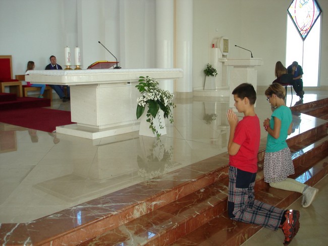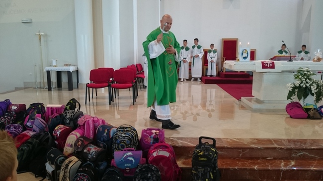 Dvije djevojčice i jedan dječak prigodnom molitvom „Opet smo zajedno“ na početku misnog slavlja zamolili su Gospodina da im u ovoj školskoj i vjeronaučnoj godini daruje svjetlo dobrote da zajedno svojim djelima šire ljubav i milosrđe prema Bogu i svojim bližnjima. Župnik Ivan obratio se na početku najmlađima: „Draga djeco! Dragi roditelji, učitelji, vjeroučitelji! Prošli su dani odmora i putovanja. Lijepo je da smo ponovno zajedno na našem nedjeljnom euharistijskom susretu. Milosrdni Otac čeka Vas djeco raširenih ruku ne samo ove nedjelje kada zazivamo Duh Svetoga – Životvorca nego svake nedjelje gdje se okupljamo oko našeg župnog obiteljskog stola da slušamo Riječ Božju i hranimo se Kruhom života. Zato danas, ovdje u Božjem domu, želimo sjediniti naše molitve za sve one koji će na bilo koji način sudjelovati u odgojno-obrazovnom radu i molimo Svevišnjega da našoj djeci budu prenositelji i svjedoci isitne i svih općeljudskih i kršćanskih vrednota“.