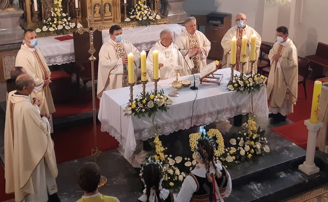 Na početku euharistijskog slavlja, zlatomisnika je pozdravio domaći župnik preč. Ivica Cik koji je rekao da je svećenik i svećenička služba Božji je dar narodu da ga poučava, tješi, krijepi otajstvima svete vjere, kako bi postigli spasenje duša i zajedništvo s Bogom.